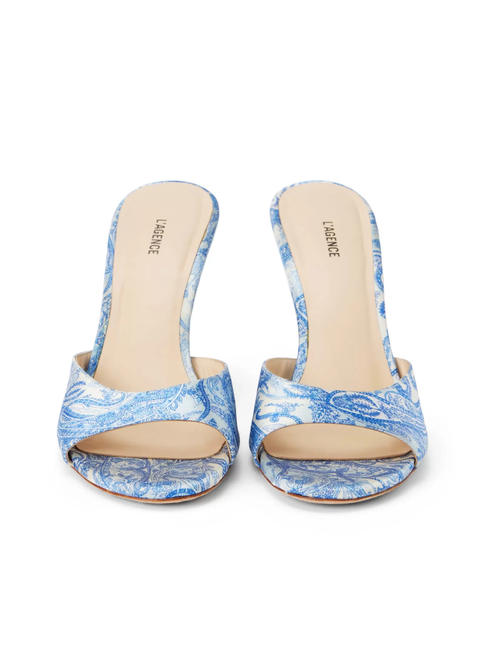 A subtly flared heel and paisley print transform a chic classic into an elegant statement. In a lustrous printed satin, the Avery backless sandal features a rounded-toe sole and clean vamp that keep the look timeless. Pair with white denim for a whimsical touch or pair with our coordinating printed sets for a complete head-to-toe look.